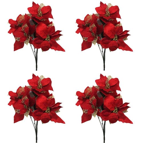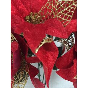 -04 unidades Buquê Natal Bico de Papagaio Vermelho Camurça e Dourado 5 Flores 47cm - Master Christmas