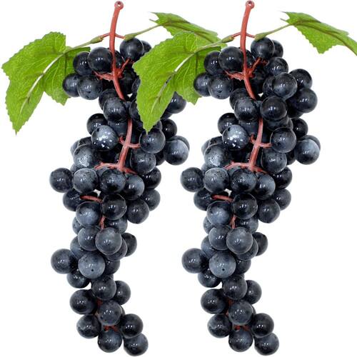 Kit 4 Cachos De Fruta Artificial Uva Preta De Silicone 32cm -