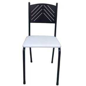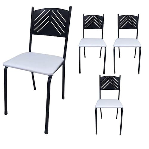 Kit 4 Cadeira Branca Cozinha Jantar Metal Tubular Almofadada Assento Preto