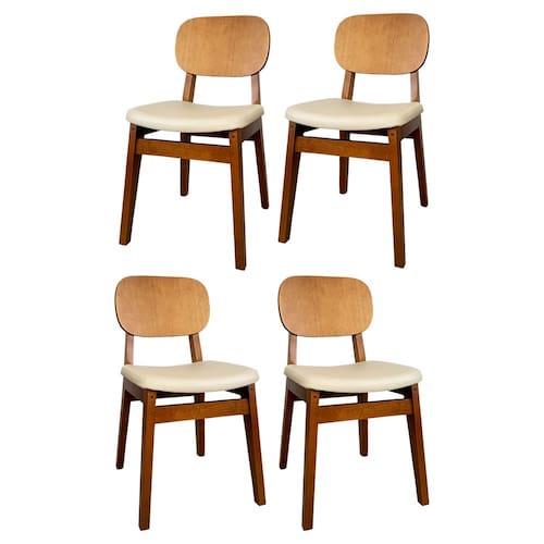 A cadeira de jantar Melissa combina elegância e funcionalidade com um design minimalista e atemporal. Estruturada em madeira maciça com acabamento em tom natural, oferece durabilidade e charme para diversos ambientes, como salas de jantar, cozinhas ou escritórios. O encosto levemente curvado em madeira proporciona conforto ergonômico, enquanto o assento estofado em material sintético bege garante maciez e fácil limpeza. Suas linhas retas e cantos arredondados trazem um toque moderno, ideal para compor ambientes sofisticados com estilo escandinavo, retrô ou contemporâneo. CARACTERÍSTICAS TÉCNICAS:- Produzida em Madeira Maciça Sustentavel; - Acabamento Envernizado na Cor Pinhão; - Assento Preenchido com Espuma D23; - Tecido Courino Sintético Bege. *PRODUTO ENTREGUE MONTADO. *CONJUNTO COMPOSTO POR 4 KITS CADEIRA MADEIRA MACIÇA COM ASSENTO COURINO BEGE DIMENSÕES: - Altura Total: 83 cm - Altura até o Assento: 47cm - Altura do Encosto: 36cm - Largura do Encosto: 40cm - Largura do Assento: 46cm - Profundidade do Assento: 46cm - Profundidade Total: 51cm - Peso 7kg INFORMAÇÕES ADICIONAIS: ATENÇÃO: Móvel produzido em madeira maciça natural podendo ocorrer mudança no tom da madeira conforme o produto; *Conferir se o produto está de acordo com o que comprou, produto danificado não será aceito troca; **As imagens ambientadas são meramente ilustrativas e podem apresentar itens que não compõe o produto. As cores do produto podem variar de acordo com o monitor, a iluminação do ambiente ou sua percepção visual; ***Limpeza deve ser feita com pano macio e seco ou levemente umedecido com água e sabão neutro. Não devem ser utilizados produtos abrasivos; Garantia para defeitos de fabricação conforme Código de Defesa do Consumidor. Marca: Não Informado