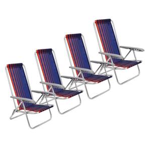 Kit 4 Cadeira De Praia Camping Reclinável Alumínio Bali Azul Marinho Tramontina