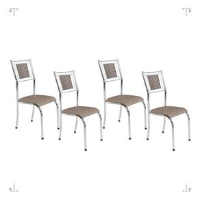 Kit 4 Cadeira Jantar Belize Moderna Cromada Aço Junco Cozinha Sala - Bege