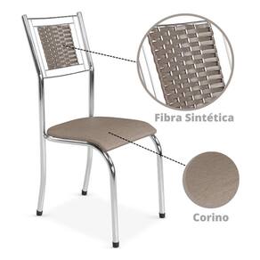 O encosto em junco sintético oferece um contraste harmonioso com o metal, criando um estilo elegante e acolhedor.