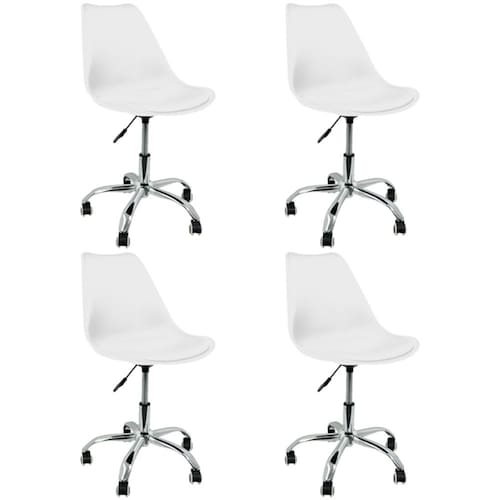 Kit 4 Cadeira Leda Giratória, Base Cromada com Rodízios, Regulagem de Altura,Branco