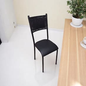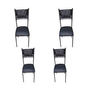 Kit com 4 Cadeiras para Cozinha e Sala de Jantar em Metal com Encosto em Fibra Sintética e Assento Curvo Estofado em Corino Preto. Transforme sua cozinha ou sala de jantar com estilo e conforto! Este Kit com 4 Cadeiras é a escolha ideal para quem busca resistência, sofisticação e praticidade no dia a dia. Com estrutura de metal pintada com tinta epóxi preta, elas oferecem durabilidade e um visual moderno. - Design moderno e elegante para cozinhas e salas de jantar; - Estrutura metálica com pintura epóxi preta, resistente à corrosão e ao tempo; - Encosto com detalhe em fibra sintética junco cor preto, toque artesanal e sofisticado; - Assento curvo estofado em corino preto, conforto com fácil limpeza; - Medidas individuais: Altura 100 cm, Largura 38 cm, Profundidade 41 cm; Ideal para ambientes compactos ou integrados, esse conjunto une beleza e funcionalidade. Renove sua casa com qualidade e bom gosto! IMAGENS MERAMENTE ILUSTRATIVA! Marca: Não Informado