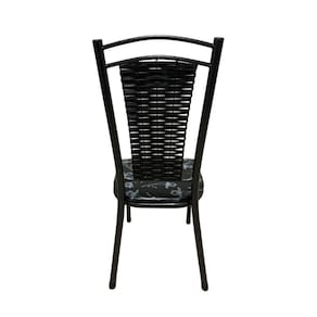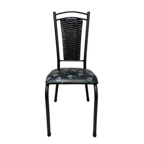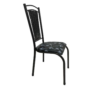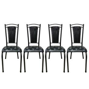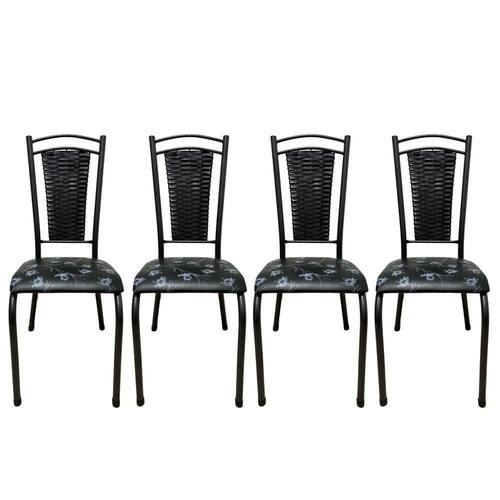Kit 4 Cadeira Paris De Cozinha Tubular Preto Aço Estofada Encosto Junco Preto Florido