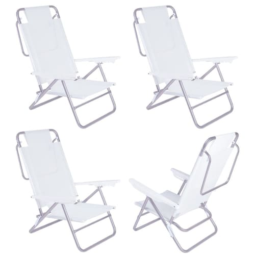 Kit 4 Cadeira Reclinável Summer 6 Posições Alumínio Praia Camping - Mor - Branco
