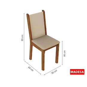 - Quatro (4) cadeiras em MDF/MDP com estrutura em pintura Rustic, encosto em Pintura Poliésterem tom Crema e assento em tecido Pérola