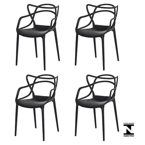 Kit 4 Cadeiras Allegra Masters Cozinha Bar Pretas Modelo: Cadeira Allegra Masters Conhecida no mundo inteiro pelo seu design único e a forma como foi criada a cadeira Allegra Masters é uma homenagem a três cadeiras símbolo da história do design a cadeira Jacobsen de Arne Jacobsen a cadeira Saarinen de Eero Saarinen e a DSR do casal Eames. Os modelos se entrelaçam em uma combinação de curvas dando vida a uma e cativante fusão de estilos. Material da Estrutura: Polipropileno Garantia de 3 meses por de fabricação. Altura Total: 84 cm Altura do Chão Até o Assento: 48 cm Profundidade Interna do Assento: 48 cm Largura Interna do Assento: 53 cm Peso Máx. Recomendado: 120 kgs Peso unitário: 4,2 kgs