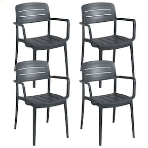 - Tenha conforto e resistência com a cadeira Tramontina Amélia em polipropileno grafite com braços.