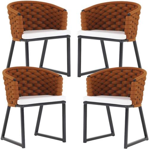 Kit 4 Cadeiras Bali Alumínio em Tricô Náutico Trama - Laranja