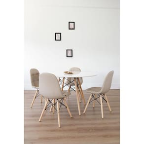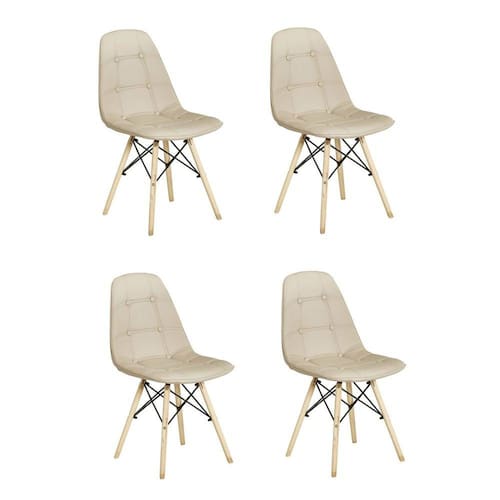 O design clássico da Eiffel com o conforto da base estofada, perfeito para ambientar sua sala de jantar, cozinha ou área de lazer com funcionalidade e estilo. Conjunto com 4 cadeiras com estrutura de madeira compensada, assento revestido com espuma e tecido PU. Base torre de madeira faia e aço, o que deixa a cadeira resistente. Peça versátil com várias opções de cores, essa cadeira fica linda em qualquer ambiente. Importante: recomendável para uso residencial. Este produto requer que seja feita uma manutenção regular simples, como apertar os parafusos periodicamente. Acabamento da Estrutura: Verniz Almofada do assento: Fixa Altura do assento até o chão: 45 Ambiente Principal: Sala de Jantar Apoio para Braços Estofado: Complexidade da Montagem: Baixa: pode ser montado por uma pessoa sozinha Cor: Nude Cor do Produto: Nude Dobrável: Não Enchimento do Assento: Espuma D-20 Enchimento do Encosto: Espuma D-20 Escala de Brilho: Fosco Estrutura do Assento: Aço pintado e Madeira Faia Estrutura do Encosto: Madeira Giratória: Não Informações Complementares: Conjunto com 4 cadeiras com assento estofado em PU e base em madeira e aço pintado. Itens Inclusos: 4 Cadeiras, Kit Ferragens e Manual de Montagem Linha ou Coleção: Cadeiras Manual de Especificação Técnica: Manual de Montagem e Instalação: https://cdn2.madeiramadeira.com.br/atributo/rivatti-moveis/367979-manual-cadeira-eiffel-boton-hb13.pdf Material da Base: Madeira Necessita Montagem: Sim Origem do Produto: Importado Peso: 4.1 Possui Apoio para Braços: Não Possui Apoio Para os Pés: Não Possui Rodízio: Não Recomendações de Uso, Manutenção e Limpeza: Limpar com pano umedecido em água e sabão neutro e secar em seguida com flanela macia. Uso interno. Não expor ao sol ou umidade, para assim manter as características únicos do produto. Não exceder a capacidade de peso. Revestimento do Assento: Poliuretano Revestimento do Encosto: Poliuretano Rodízio com Trava: Sistema de Montagem: Parafusos e encaixe Tipo de Assento: Fixo Tipo de Encosto: Fixo Tipo de Madeira Maciça: Faia