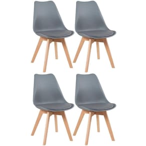 Cadeira modelo Leda: Material do encosto: Polipropileno - Material do assento: Couro PU - Material dos pés: Madeira natural - Altura do encosto: 82 cm - Altura do assento: 44 cm - Largura do assento: 48 cm - Profundidade do assento: 43 cm - Distância entre os pés: 42 cm - Peso suportado: 130 kg - Garantia: 3 meses.