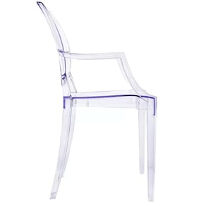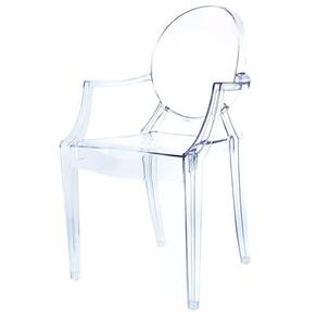 A Cadeira Com Braço Empilhável Inmetro Versalhes Louis Ghost tem formato inspirado em modelos clássicos. Por outro lado, o policarbonato transparente é supermoderno! A mistura destes elementos une duas tendências aparentemente opostas, criando uma cadeira linda e sofisticada. A cadeira Versalhes pode ser utilizada como cadeira de jantar, no dormitório, ou até mesmo como poltrona na sua sala de estar. Para sua maior comodidade, A cadeira já vem montada. Ela suporta até 120 kg de peso máximo, o que dá mais segurança e estabilidade ao sentar. A cadeira Louis Ghost foi criada pelo designer Philippe Starck no ano de 2002, e desde então virou um ícone e referência em decoração pois teve como inspiração o estilo Barroco da poltrona Louis XVI. Seu desenho nasceu através das linhas clássicas onde o encosto arredondado lembra a forma dos antigos medalhões, enquanto o assento é linear e ergométrico. Foi a primeira cadeira a ser produzida em policarbonato injetado em um único molde. Sua aparência cristalina consegue dar um toque suave e ao mesmo tempo elegante em qualquer ambiente. Com excelente custo benefício, A cadeira Ghost vem sendo muito utilizada para compor ambientes de sala de estar, cafés, bistrôs, restaurantes, auditórios e festas. Ela adéqua-se perfeitamente a qualquer estilo de sala de jantar pois possui linhas delicadas e elegantes, trazendo um toque de elegância para qualquer estilo de casa. Apesar de sua aparência cristalina, ela é extremamente durável e também pode ser empilhada. Que tal deixar sua casa cheia de estilo, moderna e elegante com esse móvel prático, bonito e resistente?