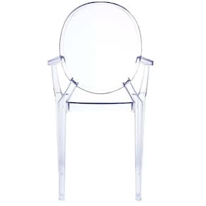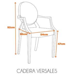 A Cadeira Com Braço Empilhável Inmetro Versalhes Louis Ghost tem formato inspirado em modelos clássicos. Por outro lado, o policarbonato transparente é supermoderno! A mistura destes elementos une duas tendências aparentemente opostas, criando uma cadeira linda e sofisticada. A cadeira Versalhes pode ser utilizada como cadeira de jantar, no dormitório, ou até mesmo como poltrona na sua sala de estar. Para sua maior comodidade, A cadeira já vem montada. Ela suporta até 120 kg de peso máximo, o que dá mais segurança e estabilidade ao sentar. Foi a primeira cadeira a ser produzida em policarbonato injetado em um único molde. Sua aparência cristalina consegue dar um toque suave e ao mesmo tempo elegante em qualquer ambiente. Com excelente custo benefício, A cadeira Ghost vem sendo muito utilizada para compor ambientes de sala de estar, cafés, bistrôs, restaurantes, auditórios e festas. Ela adéqua-se perfeitamente a qualquer estilo de sala de jantar pois possui linhas delicadas e elegantes, trazendo um toque de elegância para qualquer estilo de casa. Apesar de sua aparência cristalina, ela é extremamente durável e também pode ser empilhada.