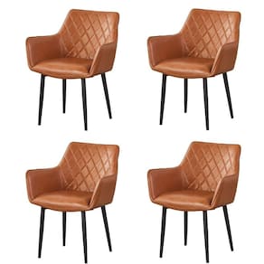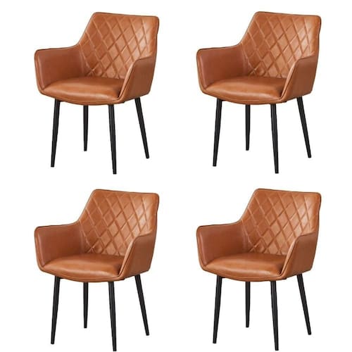 Kit 4 Cadeiras com Braços Marrakesh Fratini Estofado Matelassê (PU) Caramelo Base Aço Carbono Preto - Marrom