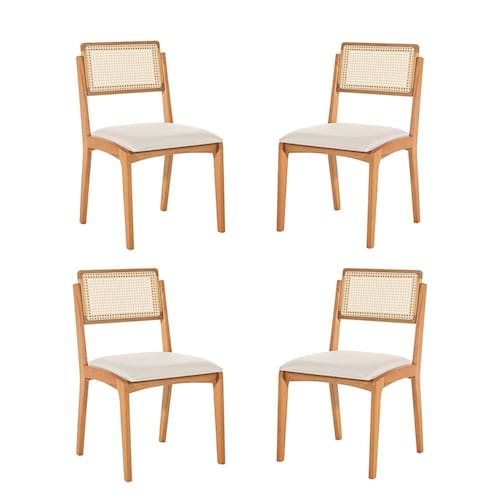 Desenvolvida para quem deseja mais acolhimento no décor, a cadeira Verona com encosto de telinha com design escandinavo é perfeita. Por ser produzida com madeira maciça de eucalipto reflorestado e acabamento Verniz mel, juntamente com o tecido claro na cor cru 06 , proporciona um ambiente com estilo luminoso, arejado e acolhedor. É Ideal para sua cozinha e sala de jantar, formando o ambiente perfeito para desfrutar junto de família e amigos uma refeição maravilhosa. Acabamento: Verniz Ambiente Principal: Sala de Jantar codigo_ean: 7900288285706 Cor: Cru/Verniz Mel Cor do Produto: Cru/Verniz Mel Dobrável: Não Escala de Brilho: Semi-Brilho Giratória: Não Informações Complementares: Este produto foi pensado e desenvolvido para elevar a decoração do seu ambiente interno e trazer um ar de sofisticação para sua sala de jantar. É recomendado seguir as instruções de manutenção e acabamento que acompanham a embalagem. Itens Inclusos: 4 Cadeiras Linha ou Coleção: Verona Manual de Especificação Técnica: https://product-hub-prd.madeiramadeira.com.br/161482421/documents/0ee6d3c7-bd5e-447e-b563-4f324fb8d5a23306039293217619105262442.pdf Marca: Casa e Jardim Móveis Material Principal: Eucalipto/MDF Necessita Montagem: Não Origem do Produto: Nacional Peso: 4,5 kg Possui Apoio para Braços: Não Quantidade de Itens: 4 Recomendações de Uso, Manutenção e Limpeza: Utilizar em ambiente interno ,coberto. Não expor ao sol e chuva. Cuidados e limpeza : Retire o pó com uma flanela macia, seca ou levemente umedecida. Passe uma esponja macia e levemente umedecida com água e detergente neutro, retire o sabão logo e em seguida com um pano branco, macio e úmido. Secar em seguida. Não utilizar álcool ou produtos químicos, abrasivos ou solventes.