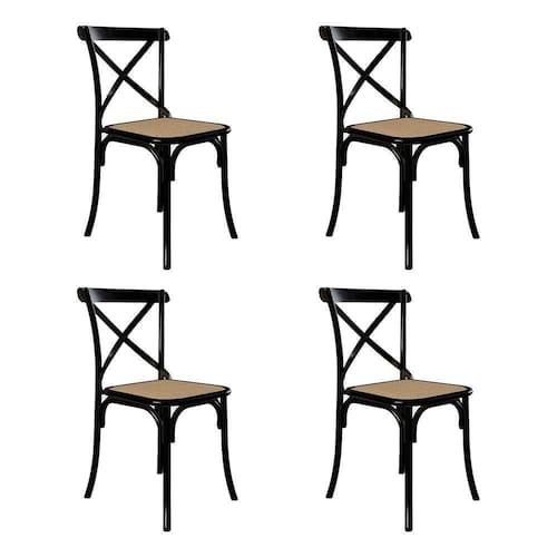 Kit 4 Cadeiras Cross Katrina Preta Assento Corano Bege Aço New Green - Cor: Preto