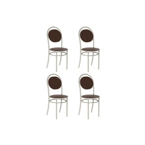 Kit 4 Cadeiras de Cozinha 190 Aço 4 Uni Prata/Courano Cacau - Carraro