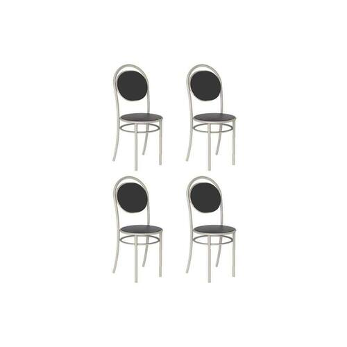 Kit 4 Cadeiras De Cozinha 190 Aço 4 Uni Prata/courano Preto - Carraro
