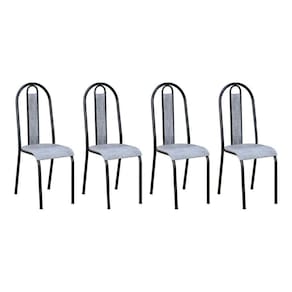 Kit 4 Cadeiras De Cozinha Arizona Estampado Linho Prata Pés De Ferro Preto - Pallazio