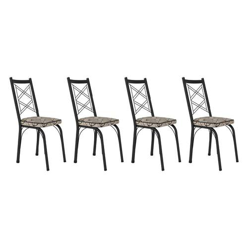 Kit 4 Cadeiras de Cozinha Delaware Estampado Cedro Pés de Ferro Preto - Pallazio - Cinza