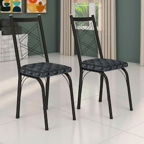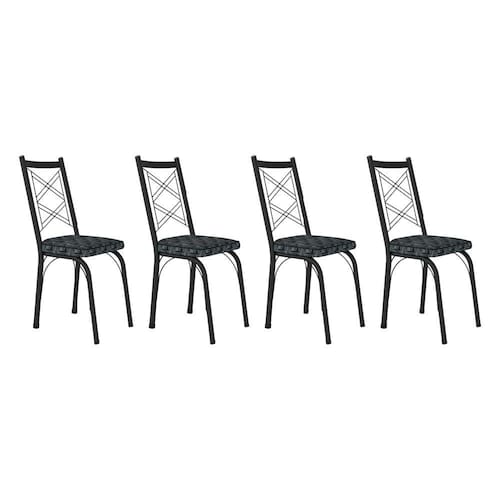 Kit 4 Cadeiras de Cozinha Delaware Estampado Mosaico Silver Pés de Ferro Preto - Pallazio
