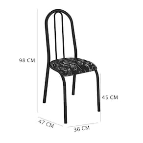 O estofamento estampado não apenas confere personalidade à cadeira, mas também proporciona conforto durante as refeições. Os pés de ferro garantem estabilidade e durabilidade, tornando-a uma escolha ideal para o ambiente da cozinha.
