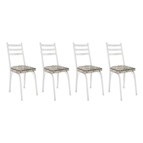 Kit 4 Cadeiras de Cozinha Luisiana Estampado Cedro Pés de Ferro Branco - Pallazio - Cinza