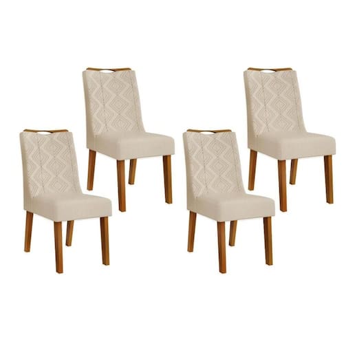 Kit 4 Cadeiras de Cozinha Stela 4 Un Ipe/Linho Neve - DJ Móveis - Blush