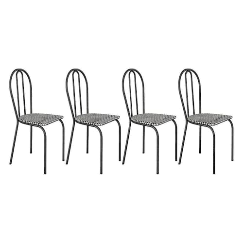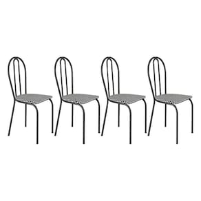 Kit 4 Cadeiras de Cozinha Texas Estampado Channel Pés de Ferro Cromo Preto - Pallazio