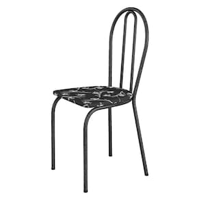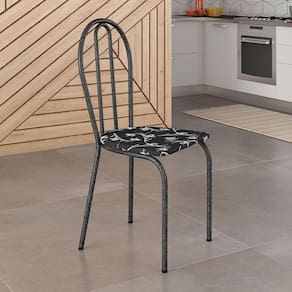 Kit 4 Cadeiras de Cozinha Texas Estampado Preto Florido Pés de Ferro Cromo Preto - Pallazio