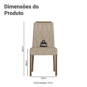O estofado em tecido Suede Imperial, na tonalidade bege, traz um visual suave e sofisticado, oferecendo não apenas um toque moderno, mas também resistência e praticidade na manutenção. A espuma de alta densidade proporciona conforto, tornando cada cadeira uma escolha perfeita para quem valoriza estilo e bem-estar.