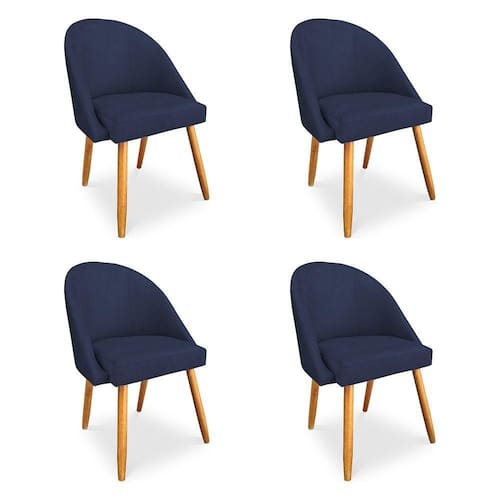 Kit 4 Cadeiras De Jantar Bela Veludo Azul Marinho Pés Palito Castanho Pallazio