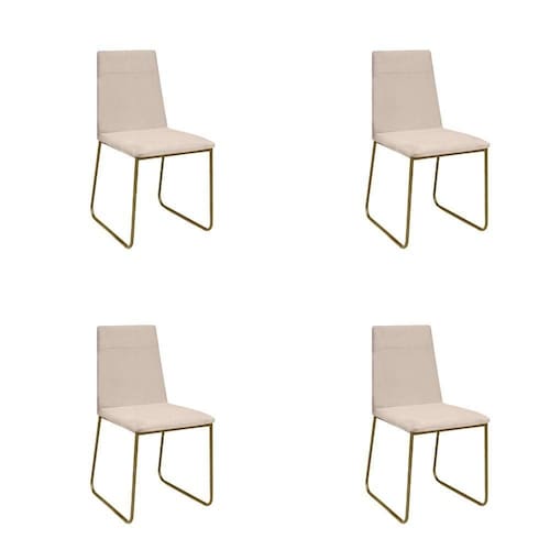 Kit 4 Cadeiras De Jantar Cozinha Industrial Lexa Veludo - élpis Móveis Bege Dourada
