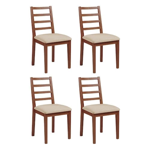 AS IMAGENS SÃO MERAMENTE ILUSTRATIVAS E PODEM SOFRER VARIAÇÕES DE COR E PEQUENOS DETALHES DE ACORDO COM O SEU MONITOR, ILUMINAÇÃO DO AMBIENTE E ATÉ MESMO A SUA PERCEPÇÃO VISUALKit 4 Cadeiras de Jantar em Madeira MaciÃa Aline Estofado Linho Bege - Imbuia