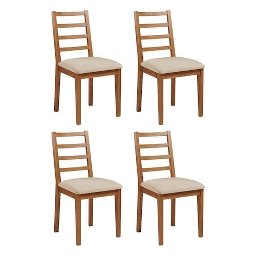 Kit 4 Cadeiras De Jantar Em Madeira Maciça Aline Estofado Linho Bege - Mel - Marrom
