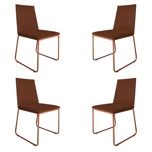 Kit 4 Cadeiras de Jantar Estofada Lille Base Bronze Veludo Terracota chegou essa incrível novidade para você, que deseja inovar e decorar o seu espaço com muito Estilo. A Cadeira Lille possui uma matéria-prima de ótima qualidade, garantindo conforto e durabilidade do produto. Possui variações de cores tanto na base e no assento, oferecendo várias opções de escolha para sua decoração.