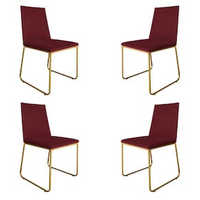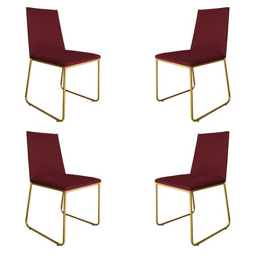 Kit 4 Cadeiras de Jantar Estofada Lille Base Gold Veludo Bordô - Montanaris Decor