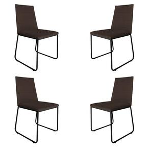 Kit 4 Cadeiras de Jantar Estofada Lille Base Preta Veludo Marrom - Montanaris Decor