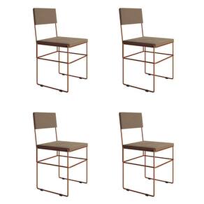 Kit 4 Cadeiras De Jantar Estofadas Veludo Bege Base Cobre Vitoria - Cor: Marrom