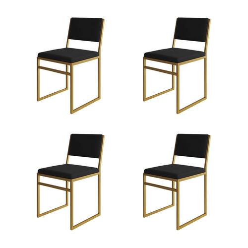 Kit 4 Cadeiras De Jantar Industrial Isa Assento Veludo Preto Base Dourado