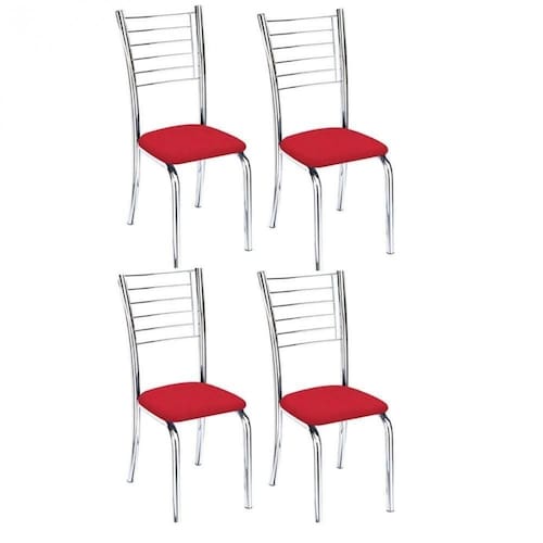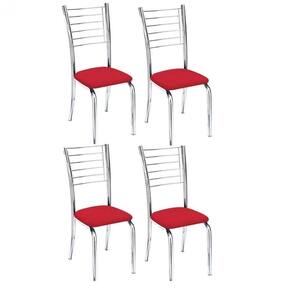 Kit 4 Cadeiras De Jantar Lara Cromada Para Cozinha Assento Corino Vermelho - Aurora Line
