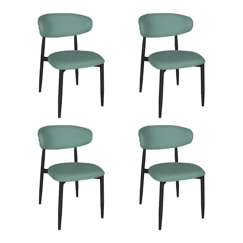 AS IMAGENS SÃO MERAMENTE ILUSTRATIVAS E PODEM SOFRER VARIAÇÕES DE COR E PEQUENOS DETALHES DE ACORDO COM O SEU MONITOR, ILUMINAÇÃO DO AMBIENTE E ATÉ MESMO A SUA PERCEPÇÃO 4 Cadeiras de Jantar Lucy Estrutura AÃo Carbono Laminado Preto com Estofado Linho Verde