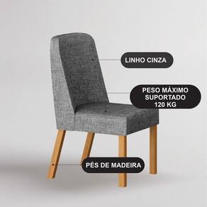 A sala de jantar é o cenário de memórias inesquecíveis, e o Kit com 4 Cadeiras de Jantar Isis foi desenhado justamente para elevar esses momentos. Com um visual sofisticado em Linho e pés em madeira, este conjunto não é apenas um item de mobiliário; é o upgrade de estilo e bem-estar que você e sua família merecem. Acabamento da Estrutura: Pintura UV Almofada do assento: Fixa Ambiente Principal: Sala de Jantar codigo_ean: 7900288331854 Complexidade da Montagem: Baixa: pode ser montado por uma pessoa sozinha Cor: Cinamomo/Cinza Cor do Produto: Cinamomo/Cinza Cor dos Pés: Marrom Dobrável: Não Enchimento do Assento: Espuma D-20 Enchimento do Encosto: Espuma D-18 Escala de Brilho: Fosco Estrutura do Assento: MDF Giratória: Não Itens Inclusos: 4 Cadeiras, Kit Ferragem e Manual de Montagem Linha ou Coleção: Isis Manual de Montagem e Instalação: https://product-hub-prd.madeiramadeira.com.br/416749470/documents/c68b52e5-e65b-456c-92cb-7d74e73ef419972cd279e9b0a22c1770819059.pdf Marca: Leifer Material da Base: Madeira Material dos Pés: Eucalipto Material Principal: Madeira Maciça Necessita Montagem: Sim Origem do Produto: Nacional Peso: 8,25 kg Possui Apoio para Braços: Não Possui Apoio Para os Pés: Não Possui Assento/Encosto Estofados: Possui Encosto e Assento Estofados Quantidade de Itens: 4 Recomendações de Uso, Manutenção e Limpeza: Utilize um pano umidecido, quase seco. Revestimento do Assento: Linho Revestimento do Encosto: Linho Sistema de Montagem: Parafusos, Cantoneiras e Sapatas Tamanho do Produto: 90x44x55,5 Tipo de Assento: Fixo Tipo de Encosto: Fixo Tipo de Madeira Maciça: Eucalipto