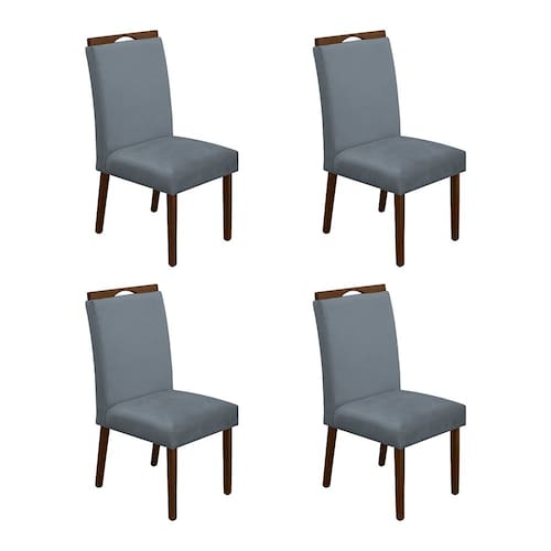 Kit 4 Cadeiras De Jantar Madeira Maciça Natural Premium Heloísa Veludo Cinza
