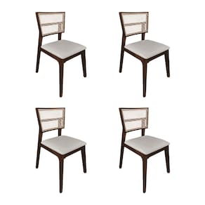 KIT 4 CADEIRAS DE JANTAR MANUELA EM TELA ASSENTO VELUDO BEGE BASE EM MADEIRA MACIÇA - NATURAL