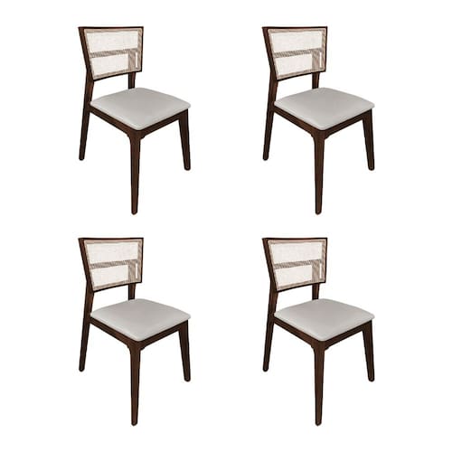 Kit 4 Cadeiras De Jantar Manuela Em Tela Assento Veludo Bege Base Em Madeira Maciça - Natural