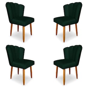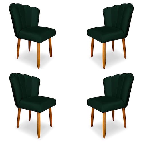 Kit 4 Cadeiras de Jantar Pétala Estofada Pés Palito Veludo Verde - Montanaris Decor