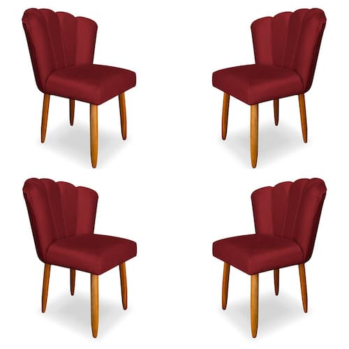 Kit 4 Cadeiras de Jantar Pétala Estofada Pés Palito Veludo Vermelho - Montanaris Decor
